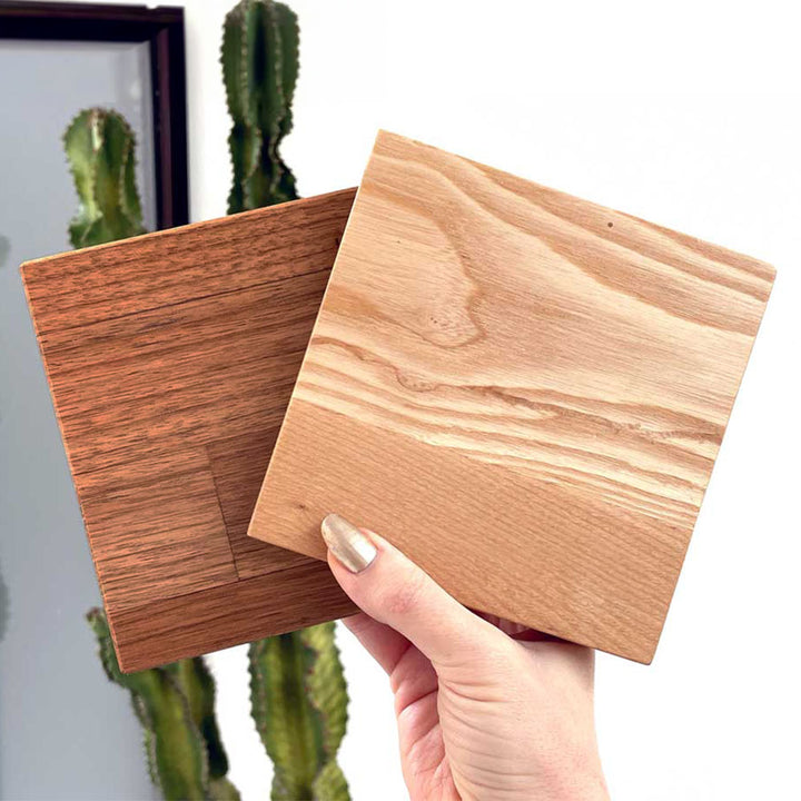 - 🪵 Includes one sample of each finish we offer (Walnut & White Oak)